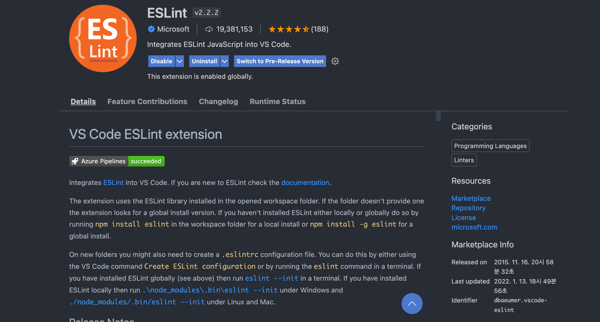 Extensions에서 먼저 ESLint를 설치해줍니다.