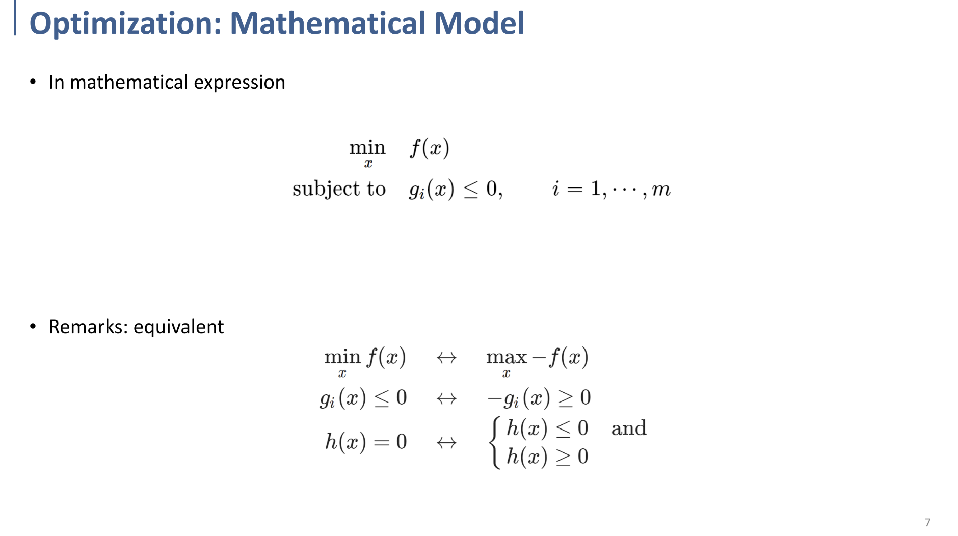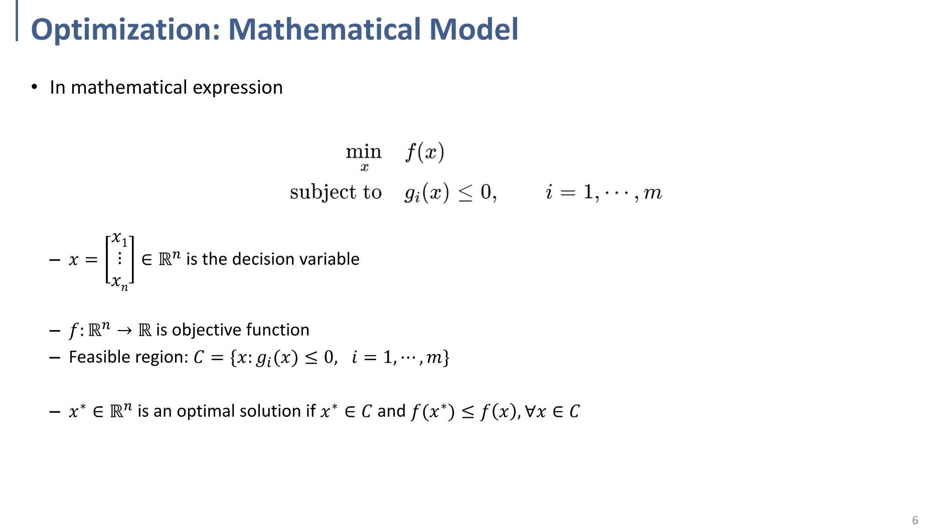 Optimization 문제는 이러한 수학적 모델로 정의할 수 있음.