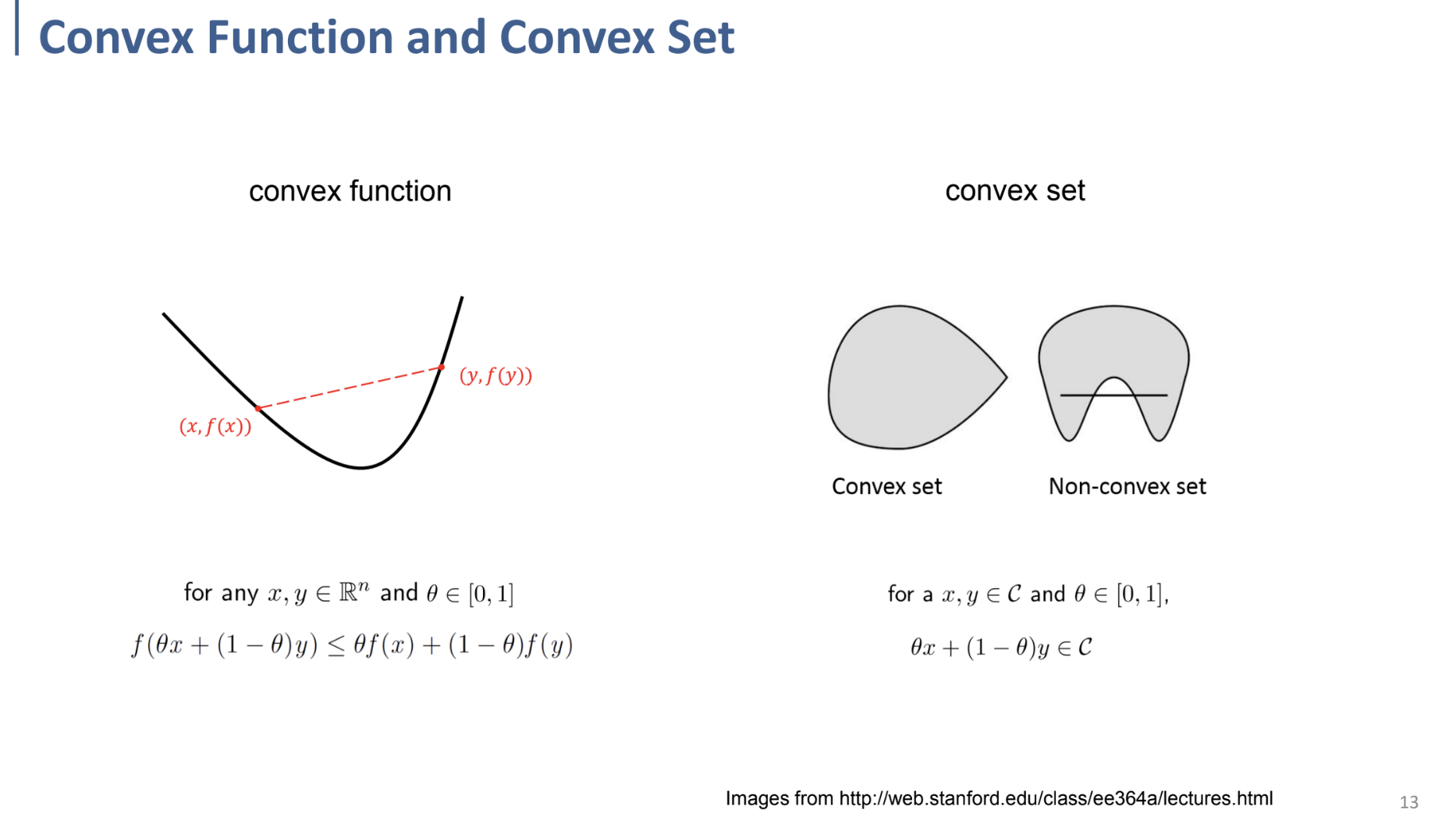 이 때 convex function과 convex set의 정의는 다음과 같음.