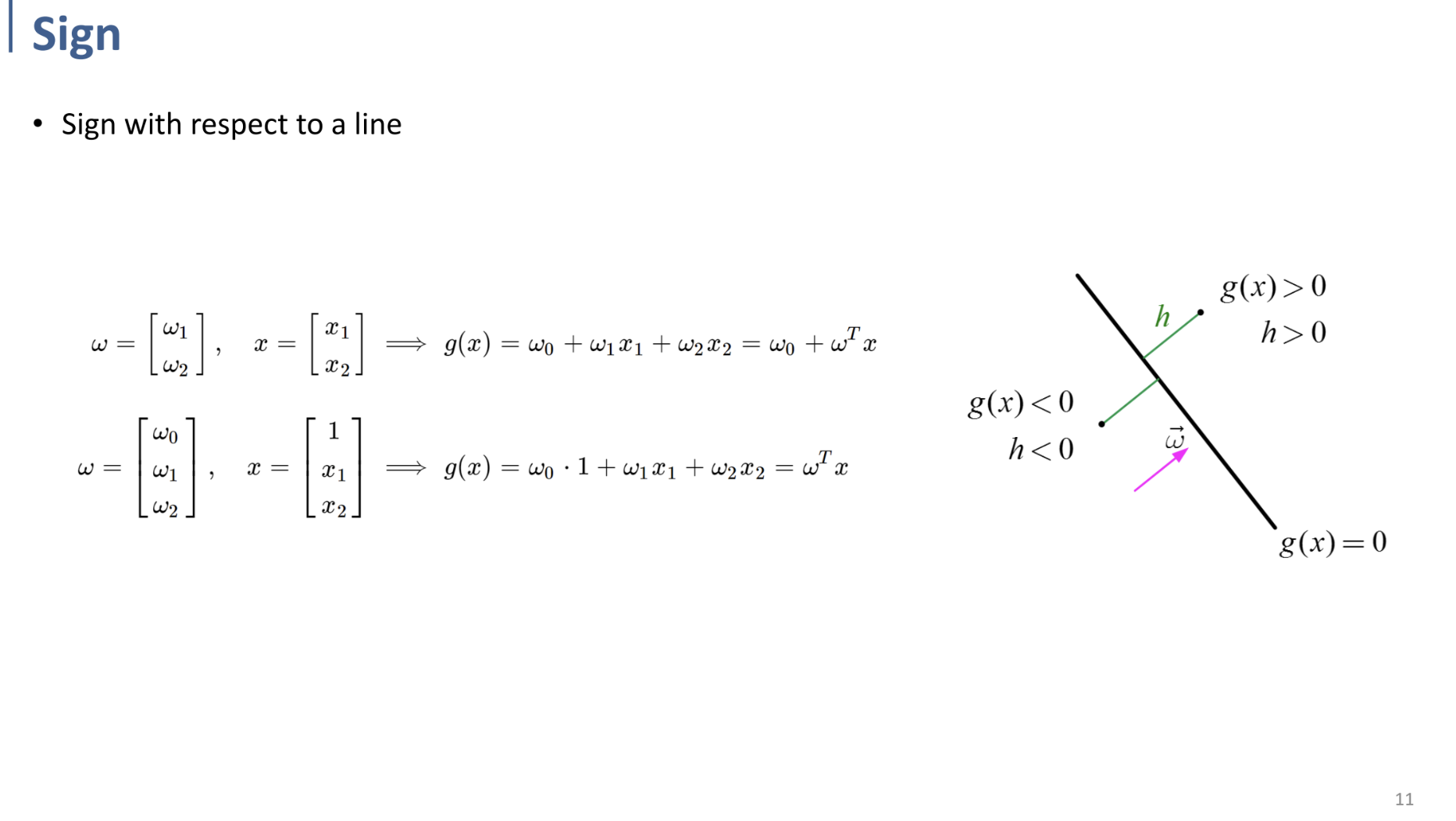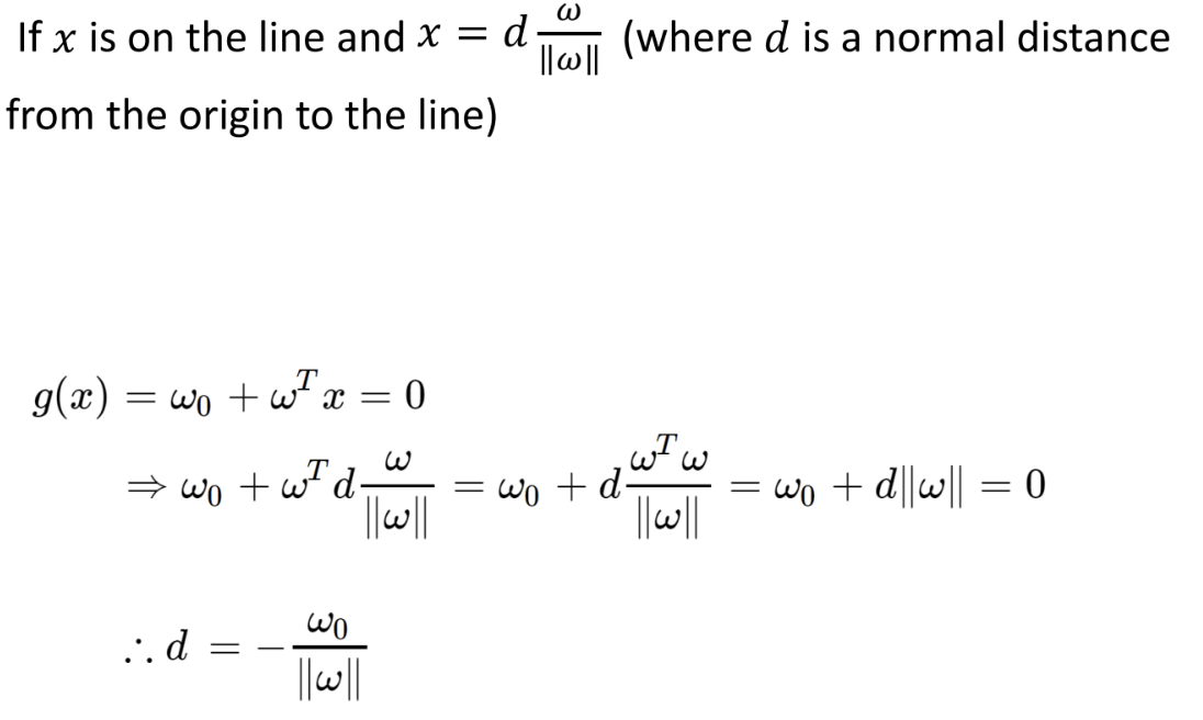 결국 $g(x) = \omega^Tx = 0$ 이라는 직선이 전체 평면을 둘로 나누는 binary classification boundary가 된다.