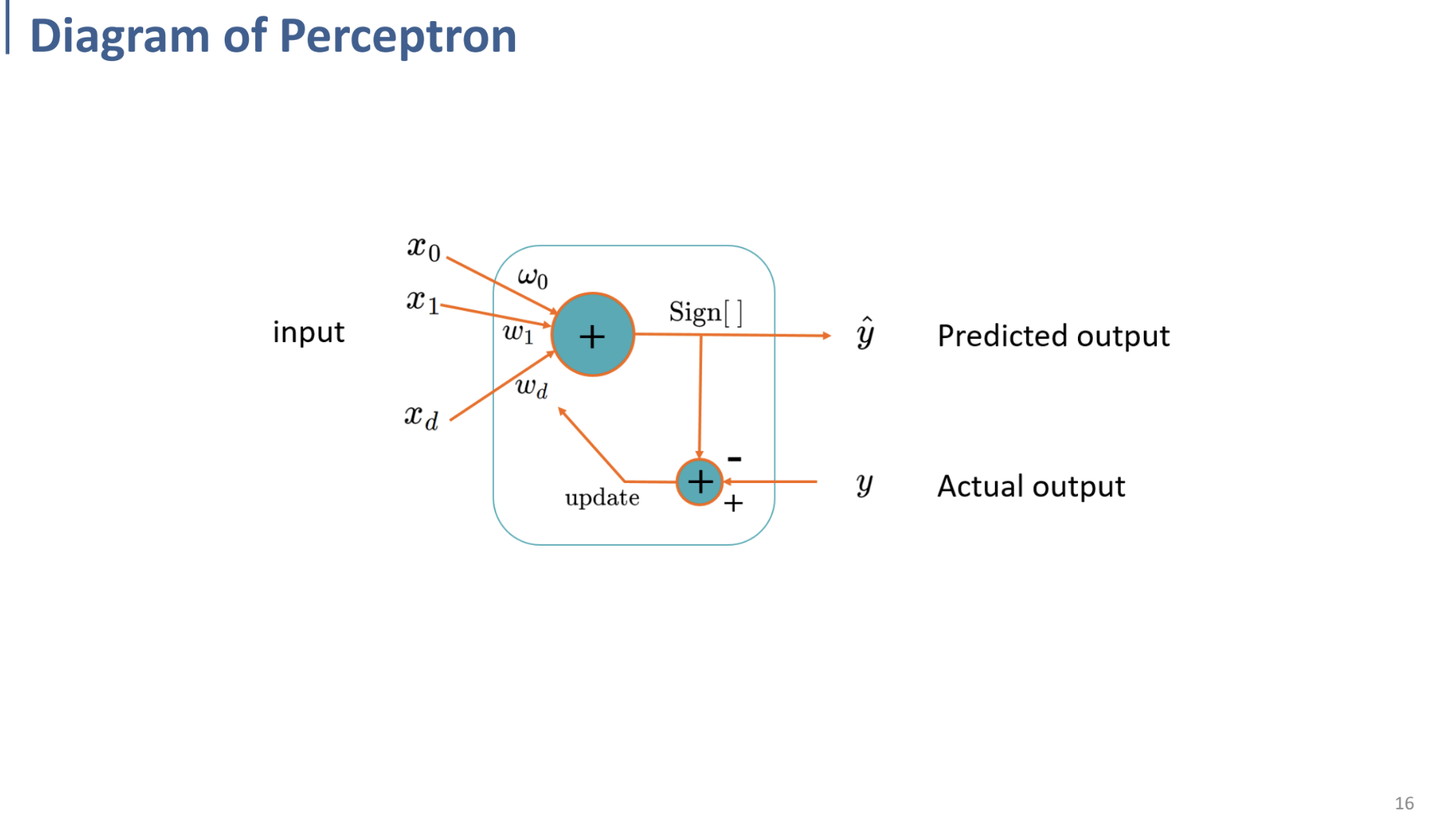 식을 보면 결국 이는 perceptron의 loss function에 대한 음수 방향으로 가중치를 조정하는 간단한 경우의 gradient descent라고 볼 수 있다.
