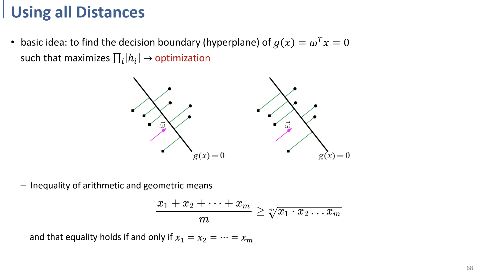 $\Pi_i|h_i|$ 를 maximize하는 $g(x)=0$ ($\omega$)를 찾는 Optimization 문제가 된다.