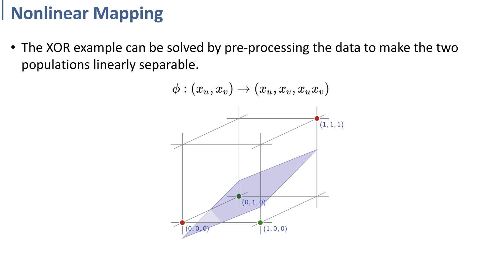 이전에 다룬 것과 같이, XOR Problem과 같은 non-linear separable problem은 Kernel을 이용한 Mapping을 통해 data를 전처리하여 해결할 수 있다.