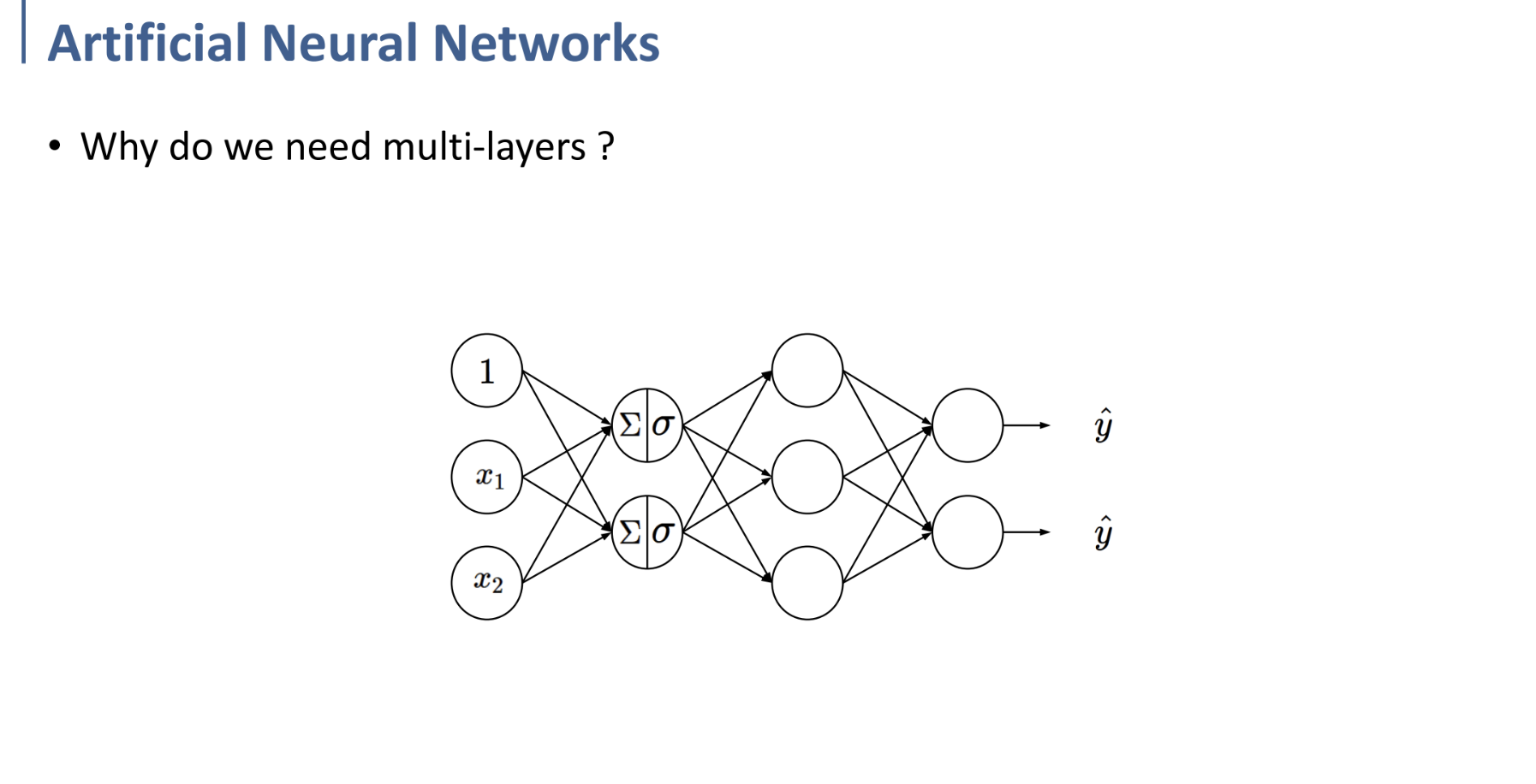 Single Layer(하나의 weighted sum을 계산하고 - Activation Function을 적용하여 output을 내는 형태의 Layer)로는, data의 input과 output 사이의 복잡한 관계를 표현하기에는 무리가 있다.