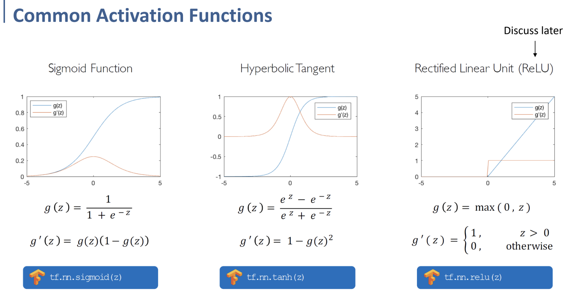 - Activation Function (tanh, ReLU)