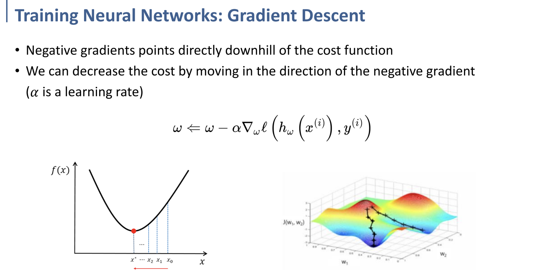 그리고 NN을 training, Optimizing 하는 방법으로는, Gradient Descent를 이용할 것.
