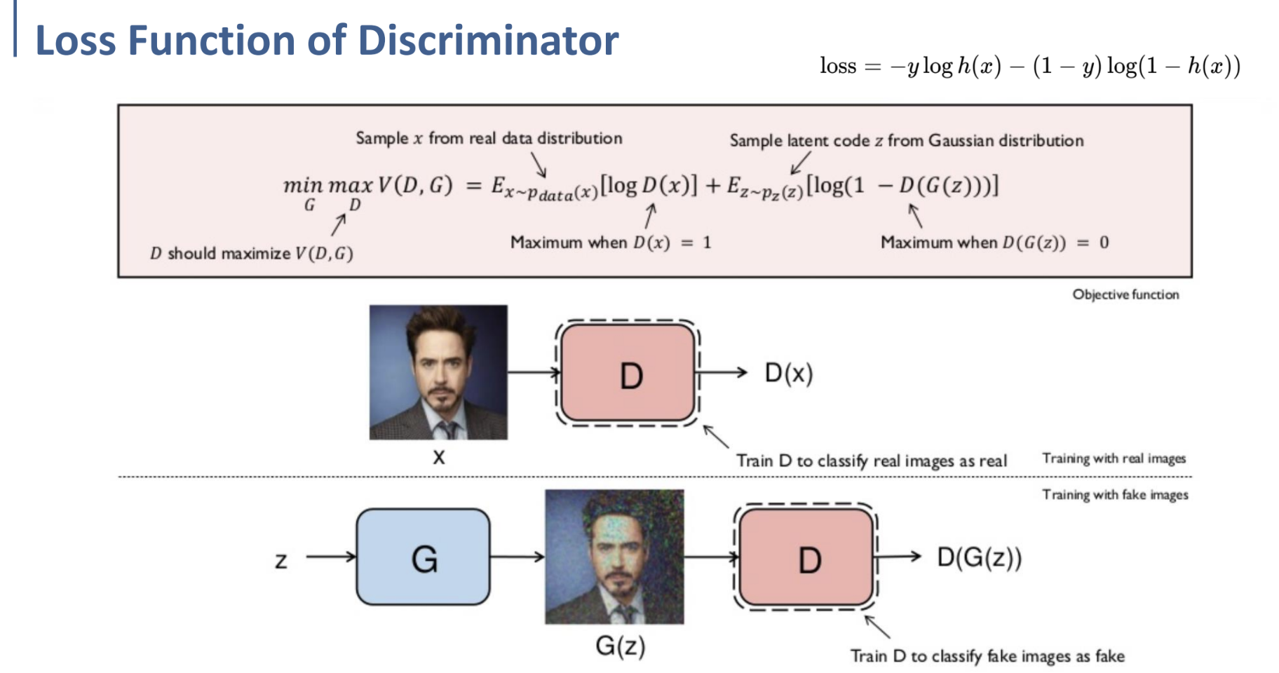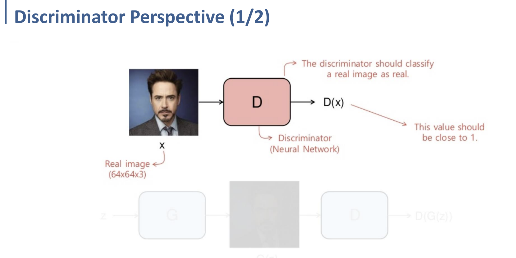 Discriminator의 관점에서, real image $x$가 input으로 들어오면, Discriminator는 이를 real로 classify해야 한다.
