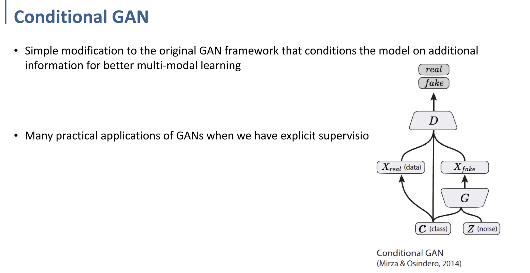 Generator가 특정한 조건이나 특성을 가진 fake sample을 만들어내는 것을 학습한다.