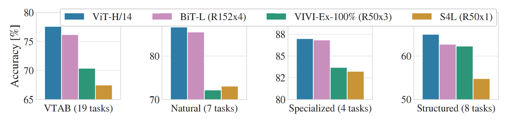 VTAB: pre-trained model이 여러 downstream task에서 trasnfer learning / few-shot learning 등을 통해 얼마나 좋은 성능을 내는가를 측정하는 지표.