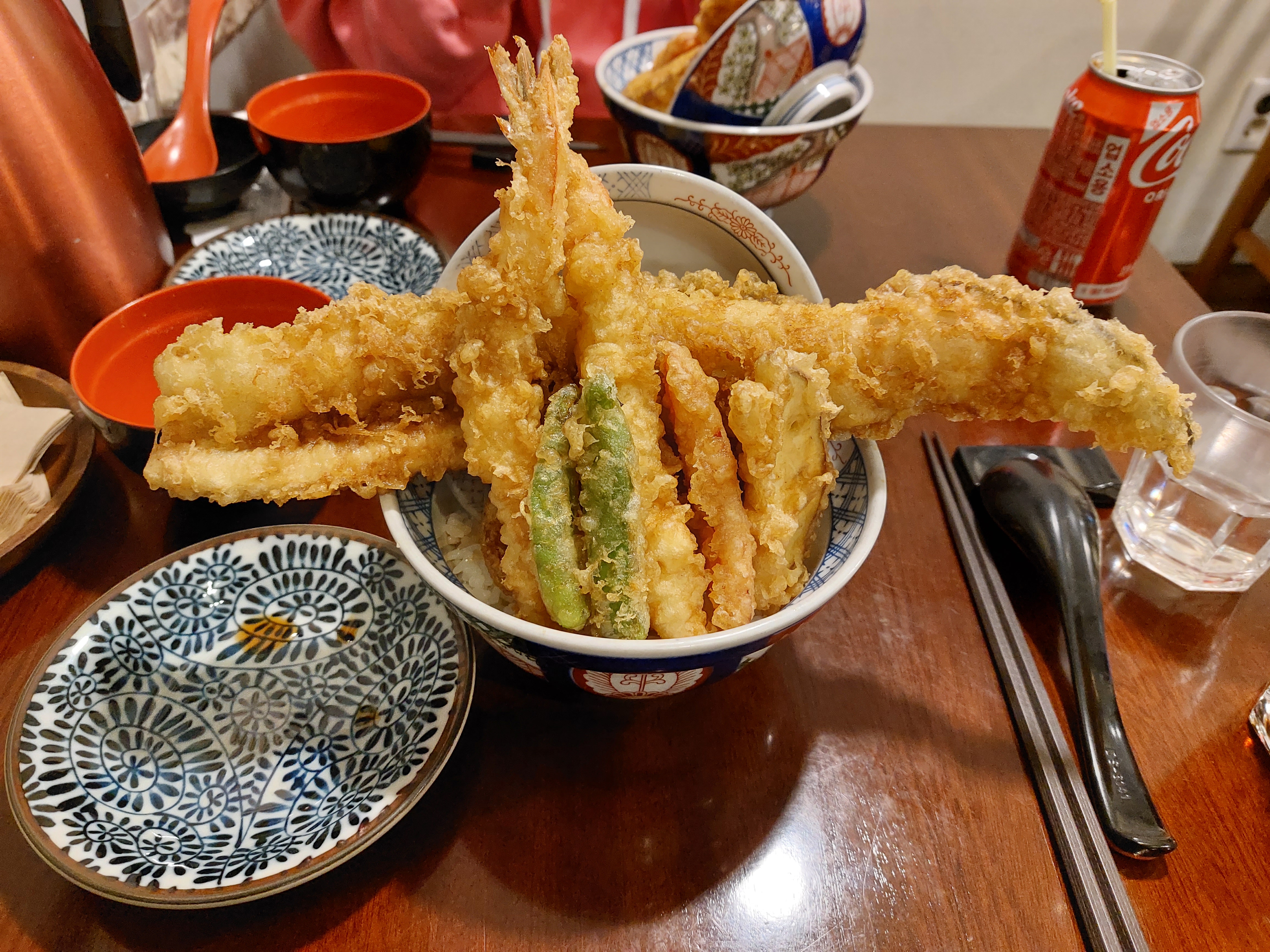 19,000원짜리 텐동-하를 시켰는데, 아나고가 굉-장히 크게 나온다.