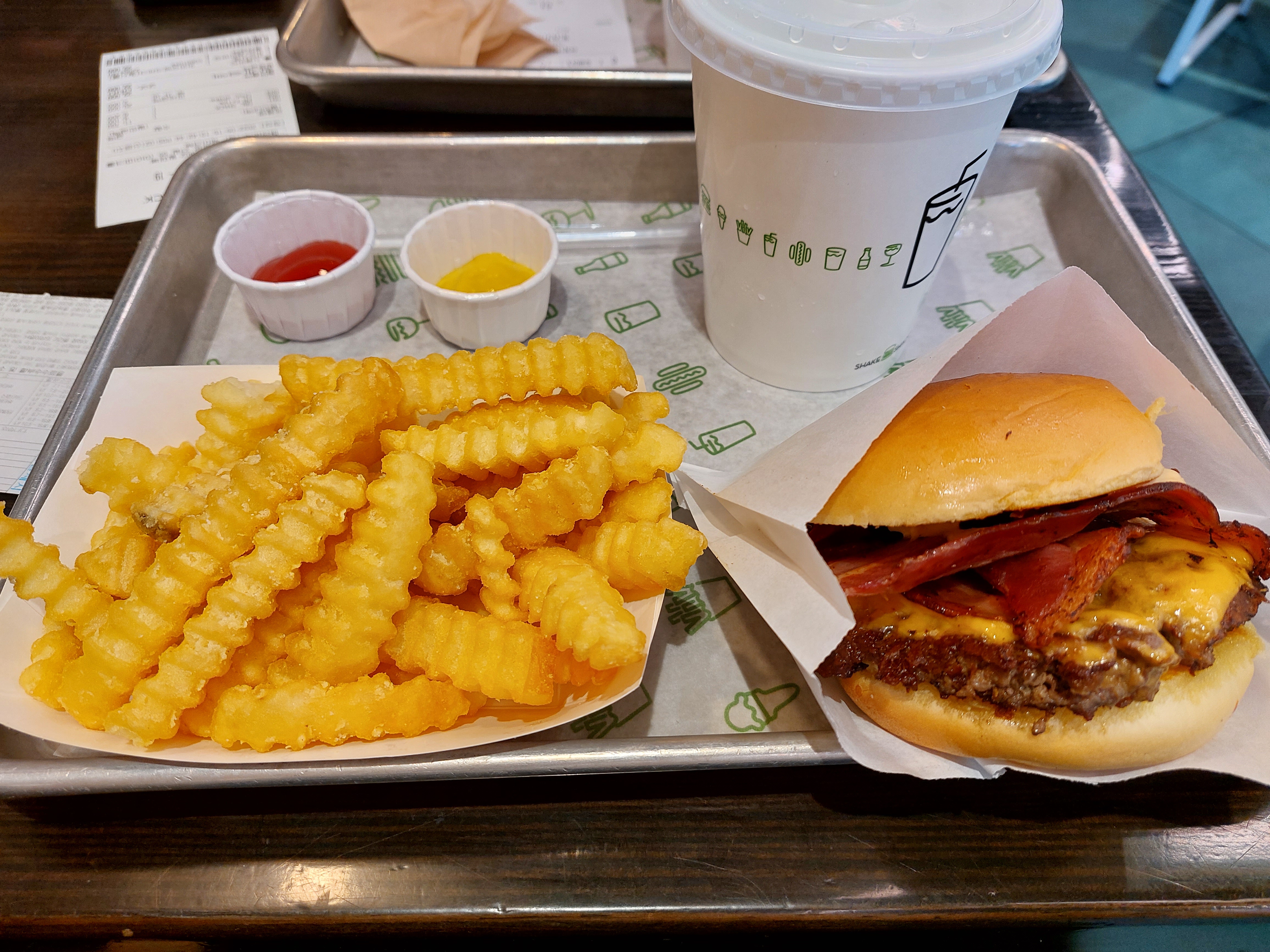 대충 스모크쉑이랑 감자튀김이랑 사이다 시킴.